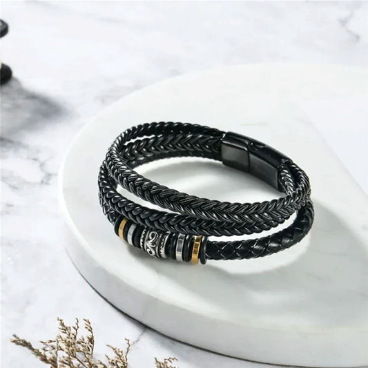 "Dad And Son Forever Linked Together" Braided Leather Bracelet