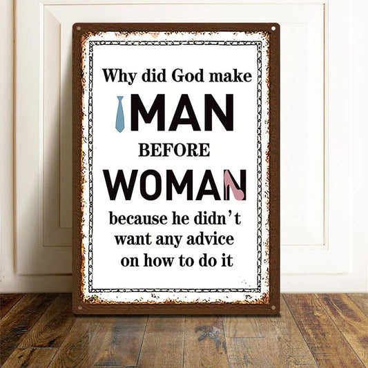 Why Did God Make Man Before Woman Funny Metal Signs, Retro Metal Sign Yard Decor, Home Decor