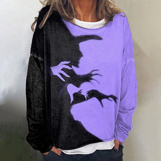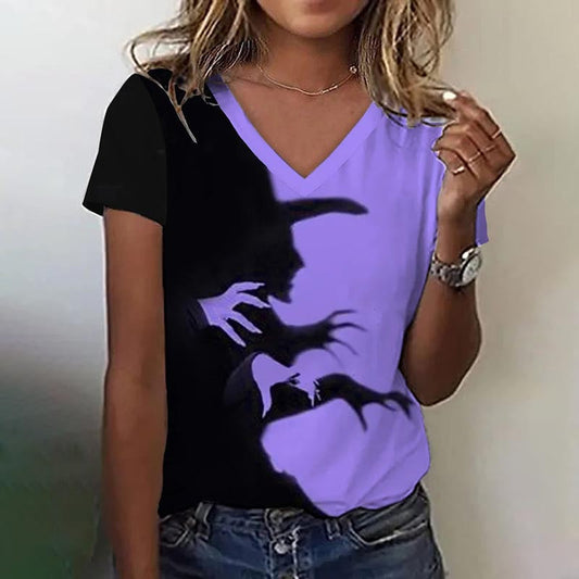 Women's Halloween Witch Shadow Print Casual V-Neck Tee