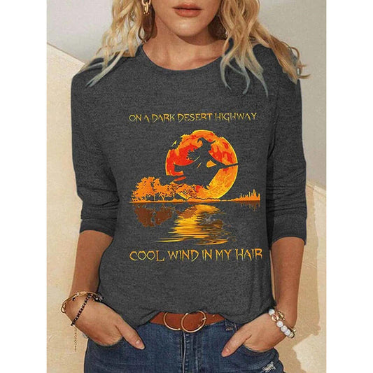 Women On A Dark Desert Highway Cool Wind In My Hair Halloween Text Letters Tops