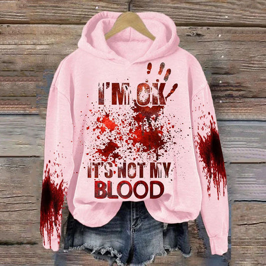 Women's I'M Ok It'S Not My Blood Printed Long Sleeve Hoodie