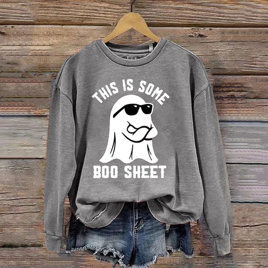 Women's Halloween This Is Some Boo Sheet Printed Crew Neck Long Sleeve Sweatshirt