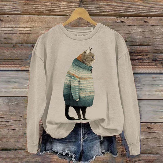 Women's Winter Cat Print Crew Neck Sweatshirt