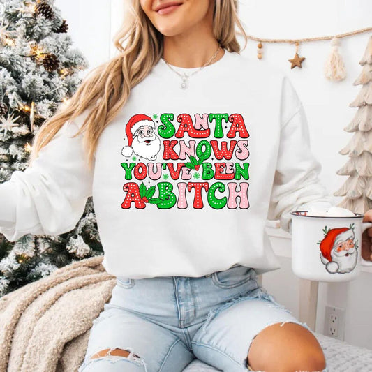 Santa Knows You’ve Been A B*tch – Humorous Christmas Graphic Shirt