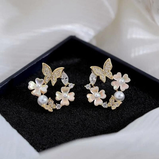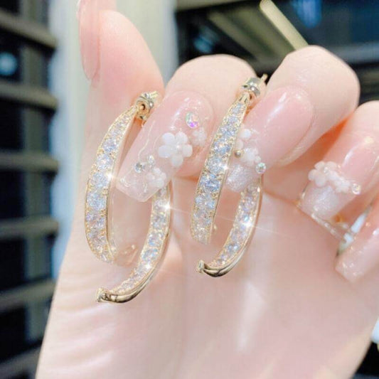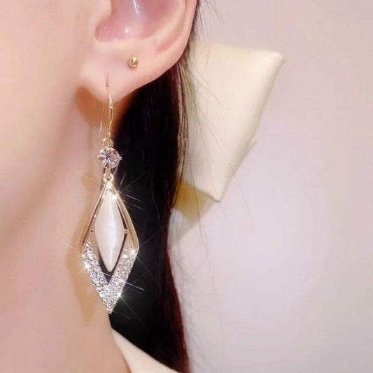 Flower Zircon Rhombic Sapphire Drop Earrings