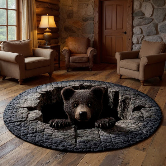 Bear Burrow - 3D Illusion Bear Round Rug - Holiday Bear
