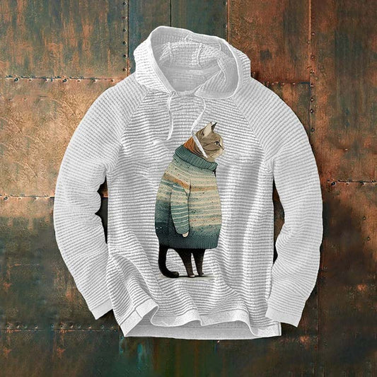 Men's Winter Cat Print Waffle Hooded Sweatshirt