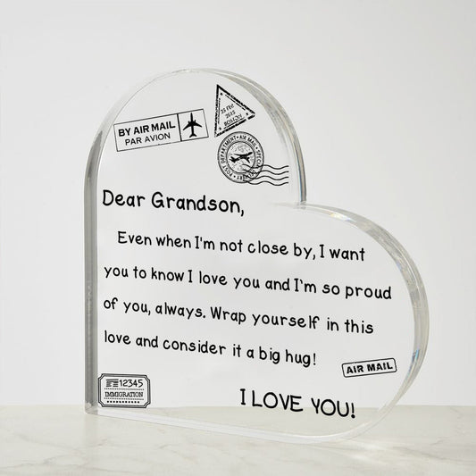 To My Grandson - I Love You - D352 - Heart Shaped Acrylic Plaque