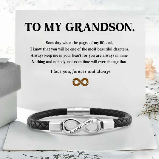 Love My Grandson - I Love You Forever And Always - Infinity Leather Bracelet
