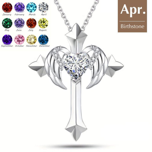 Birthstone Zirconia - Angel Wings Cross Necklace