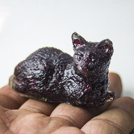 Garnet - Handmade Natural Crystal Gemstone Lying Cat