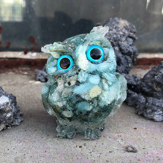 Larimar Blue - Handmade Natural Crystal Gemstone Owl