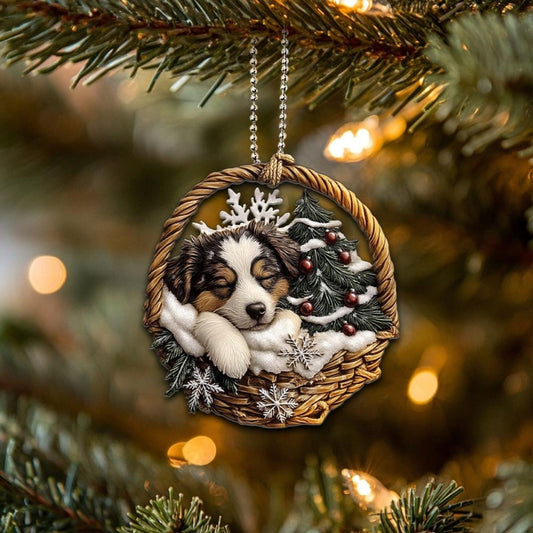 Australian Shepherd In Mini Basket Ornament - MB027