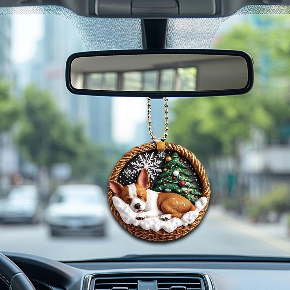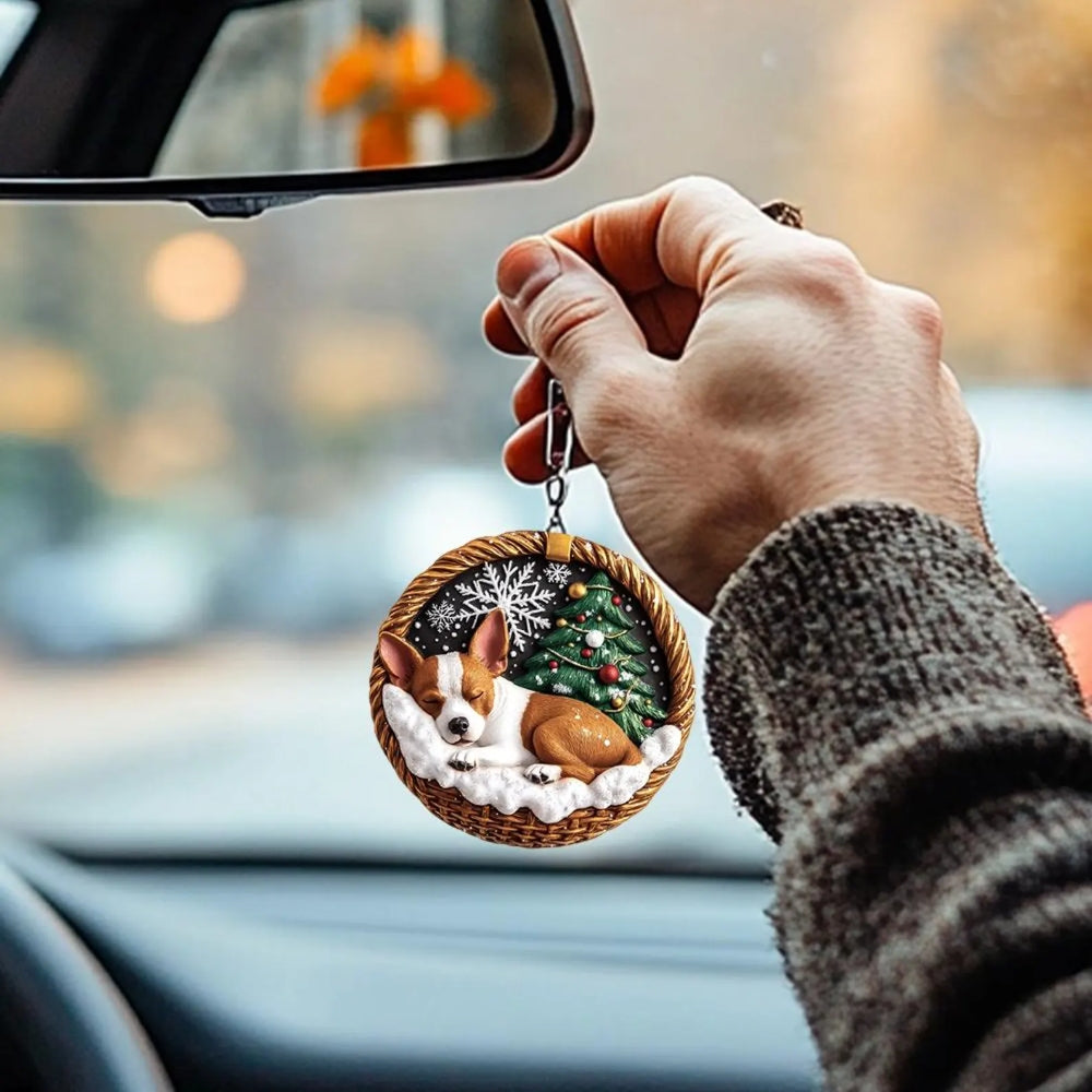 Our Mini Baskets Ornament adds a touch of whimsy and warmth to your home. Perfect for dog lovers, this decor features a charming and playful design depicting a peacefully sleeping pooch. Whether you hang it on your Christmas tree, use it as a keychain, or simply display it on your bookshelf, it'll bring a touch of cheer to any space.