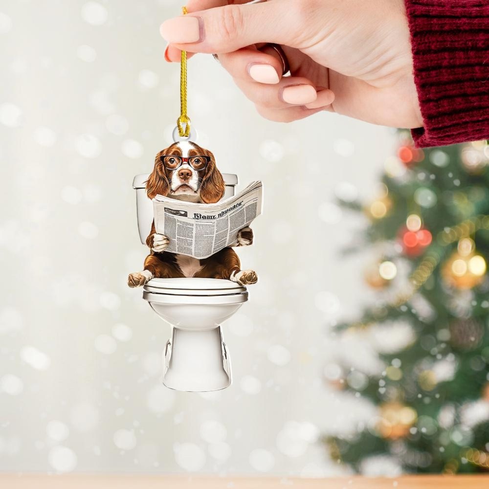 Brittany Spaniel - Dog Sitting On Toilet Ornament OT020