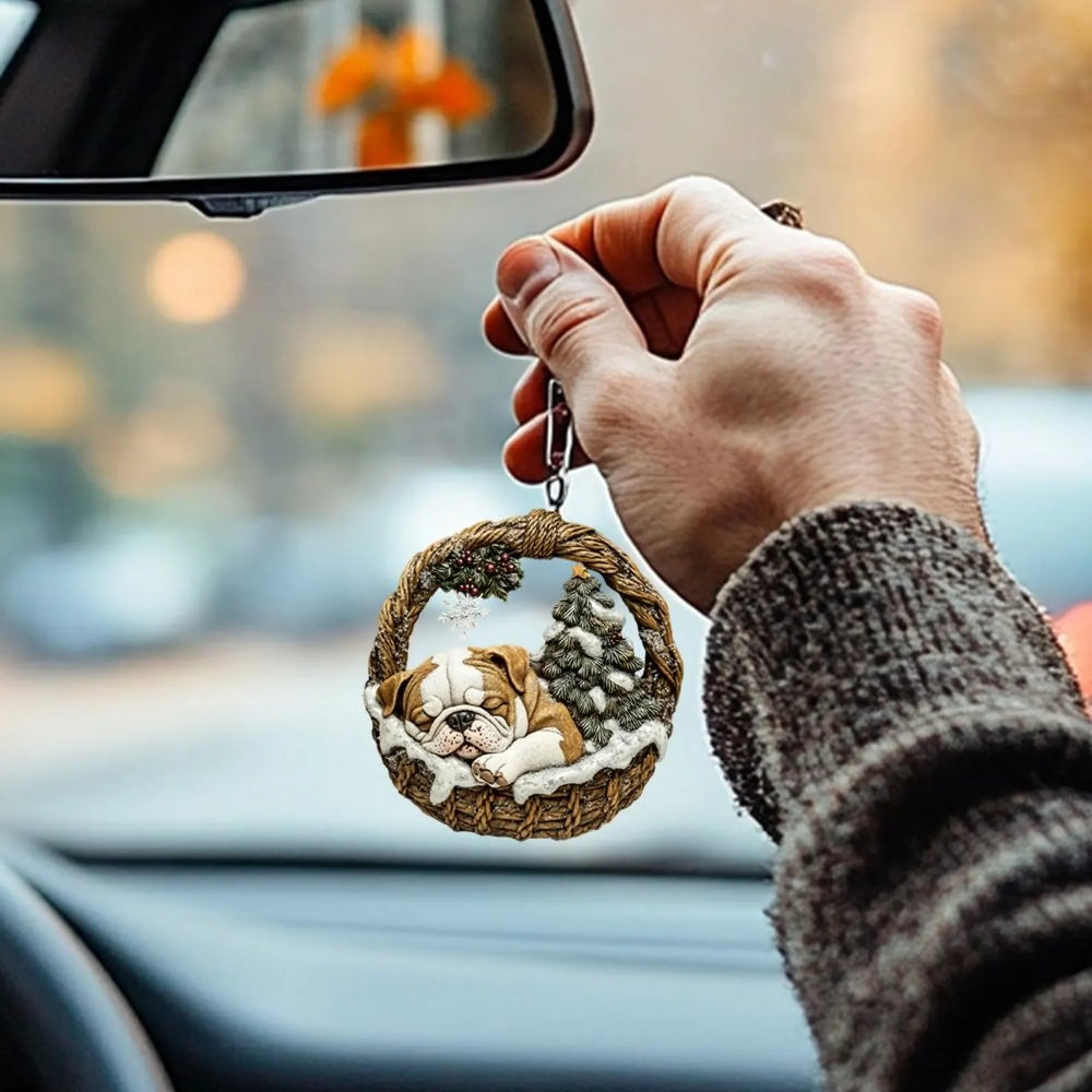 Our Mini Baskets Ornament adds a touch of whimsy and warmth to your home. Perfect for dog lovers, this decor features a charming and playful design depicting a peacefully sleeping pooch. Whether you hang it on your Christmas tree, use it as a keychain, or simply display it on your bookshelf, it'll bring a touch of cheer to any space.