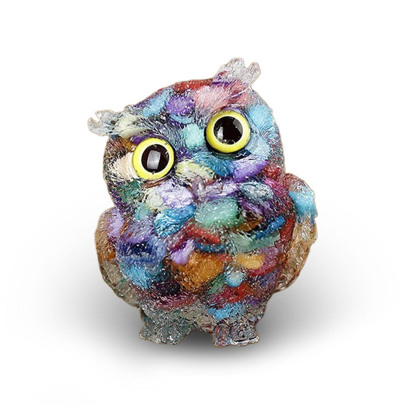 Colorful Shell With Yellow Eyes - Handmade Natural Crystal Gemstone Owl