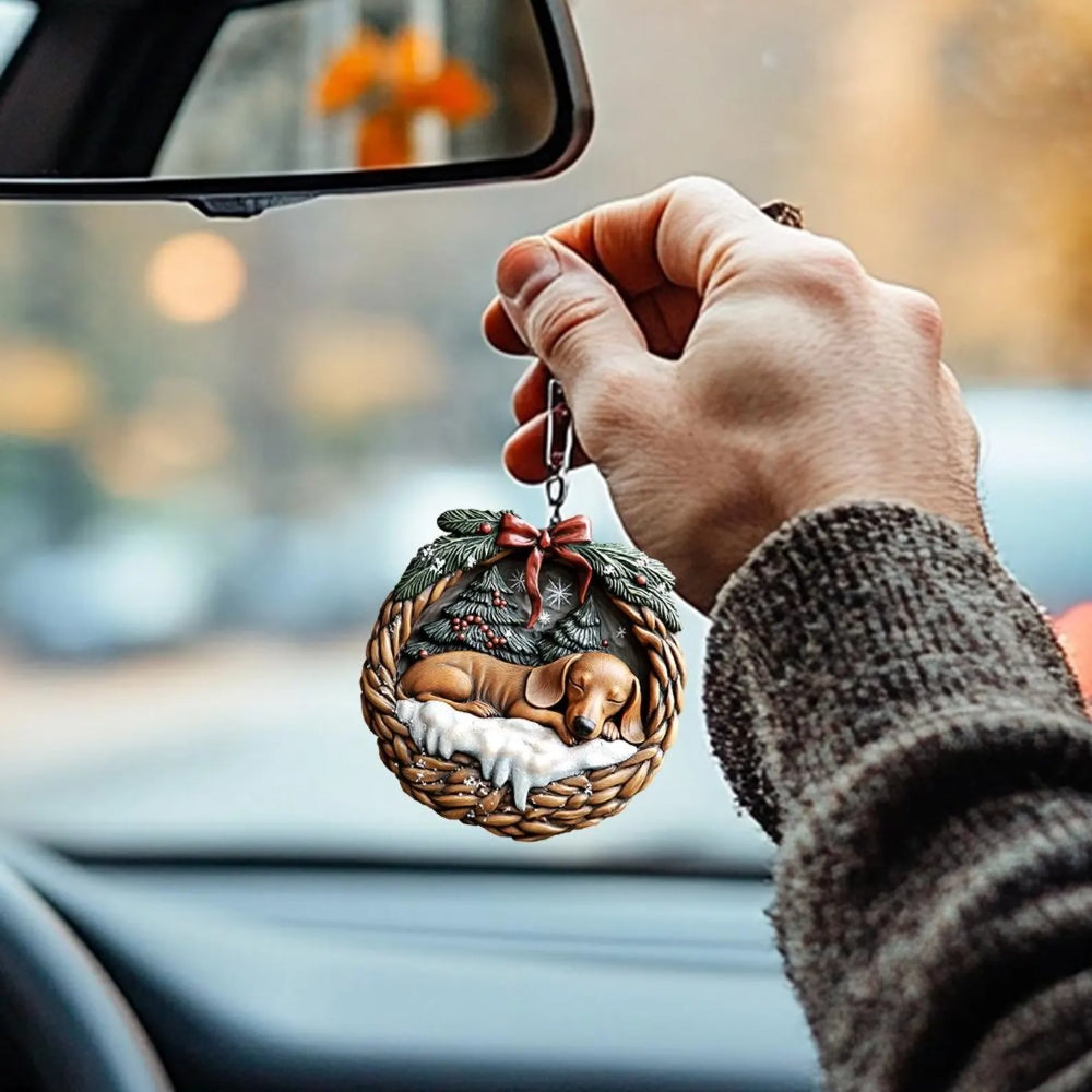 Our Mini Baskets Ornament adds a touch of whimsy and warmth to your home. Perfect for dog lovers, this decor features a charming and playful design depicting a peacefully sleeping pooch. Whether you hang it on your Christmas tree, use it as a keychain, or simply display it on your bookshelf, it'll bring a touch of cheer to any space.