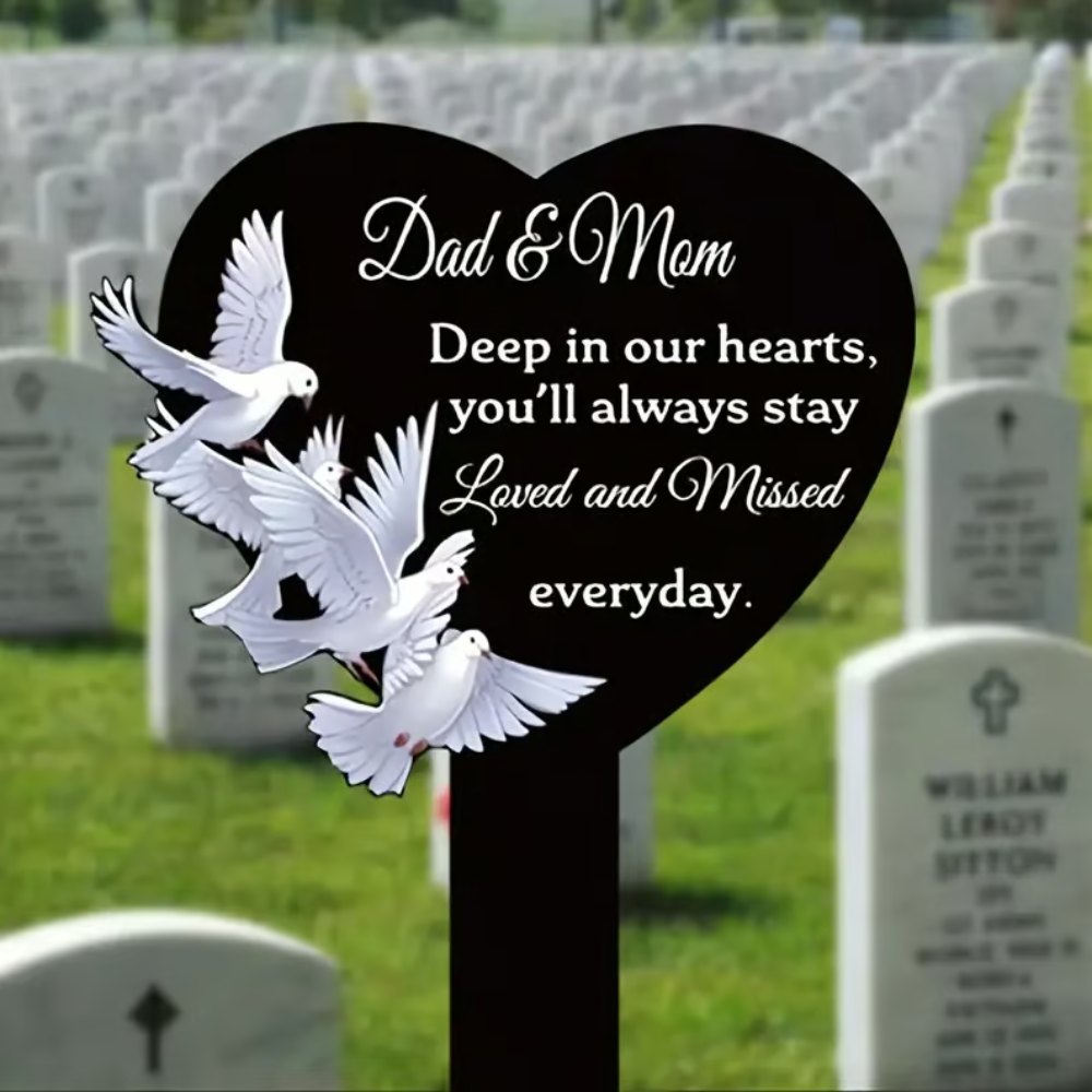 Shaped like a loving heart, this plaque is crafted from high-quality, weather-resistant acrylic—strong enough to endure the elements, yet soft in appearance, echoing the lasting bond that remains even after goodbye.