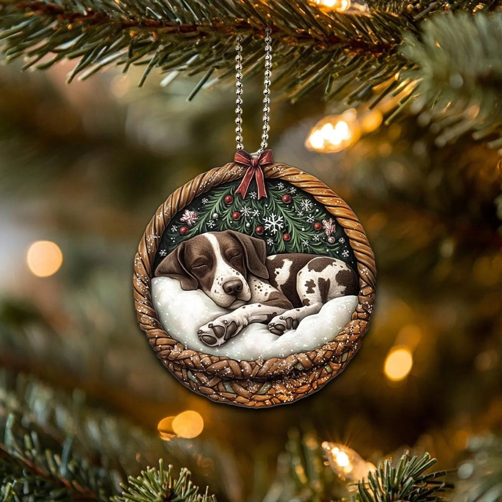 Our Mini Baskets Ornament adds a touch of whimsy and warmth to your home. Perfect for dog lovers, this decor features a charming and playful design depicting a peacefully sleeping pooch. Whether you hang it on your Christmas tree, use it as a keychain, or simply display it on your bookshelf, it'll bring a touch of cheer to any space.
