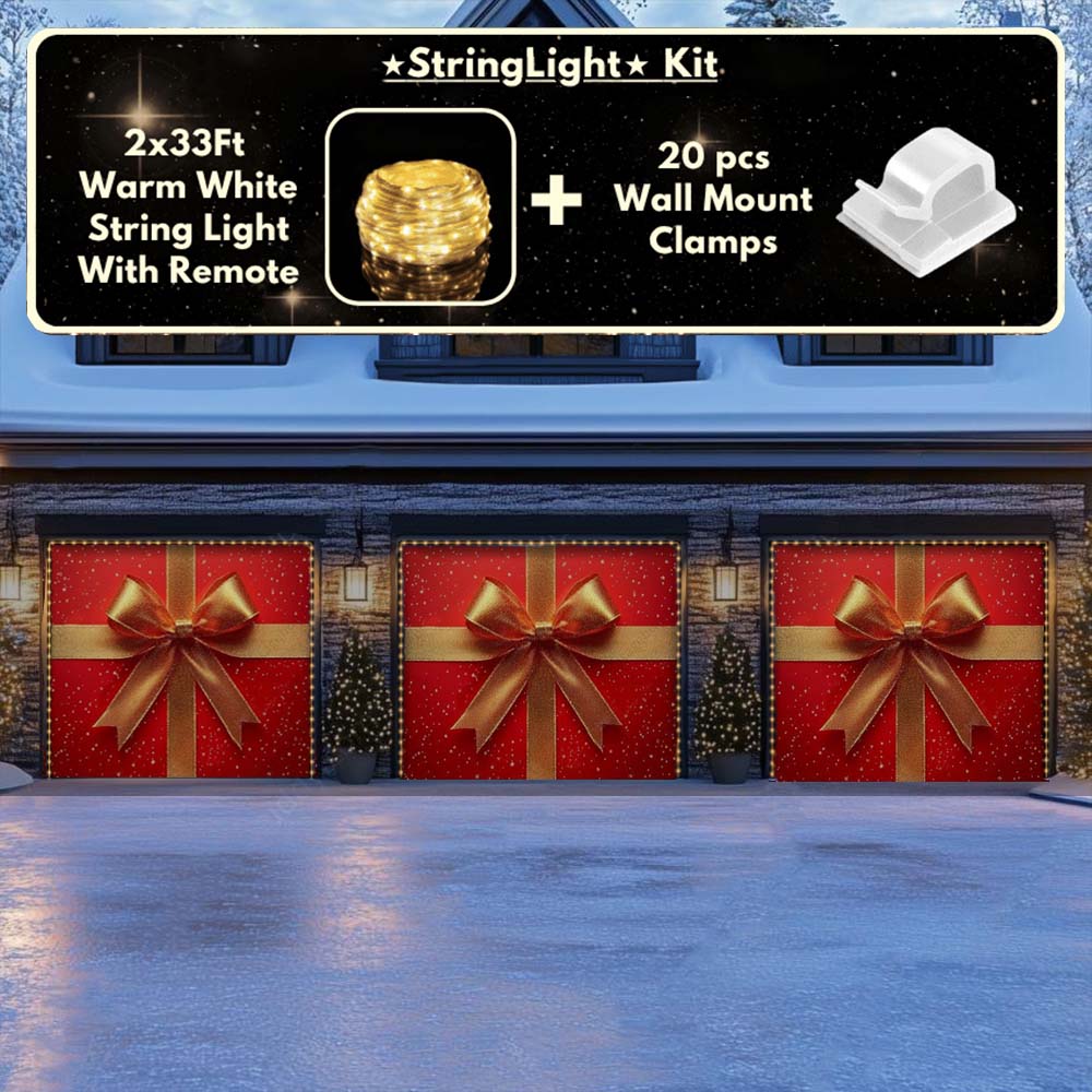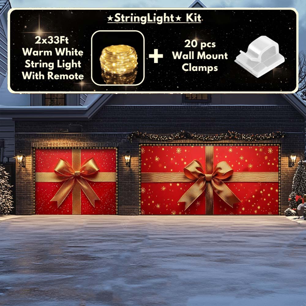 Now you can elevate your holiday display with our string light kit-available at 50% off! Pair your Christmas Garage Door Cover with glowing outdoor Christmas lights and turn your garage into a true showstopper. The kit includes 1x 33 ft warm white string light, a remote control, and 10x sticky wall mount clamps.