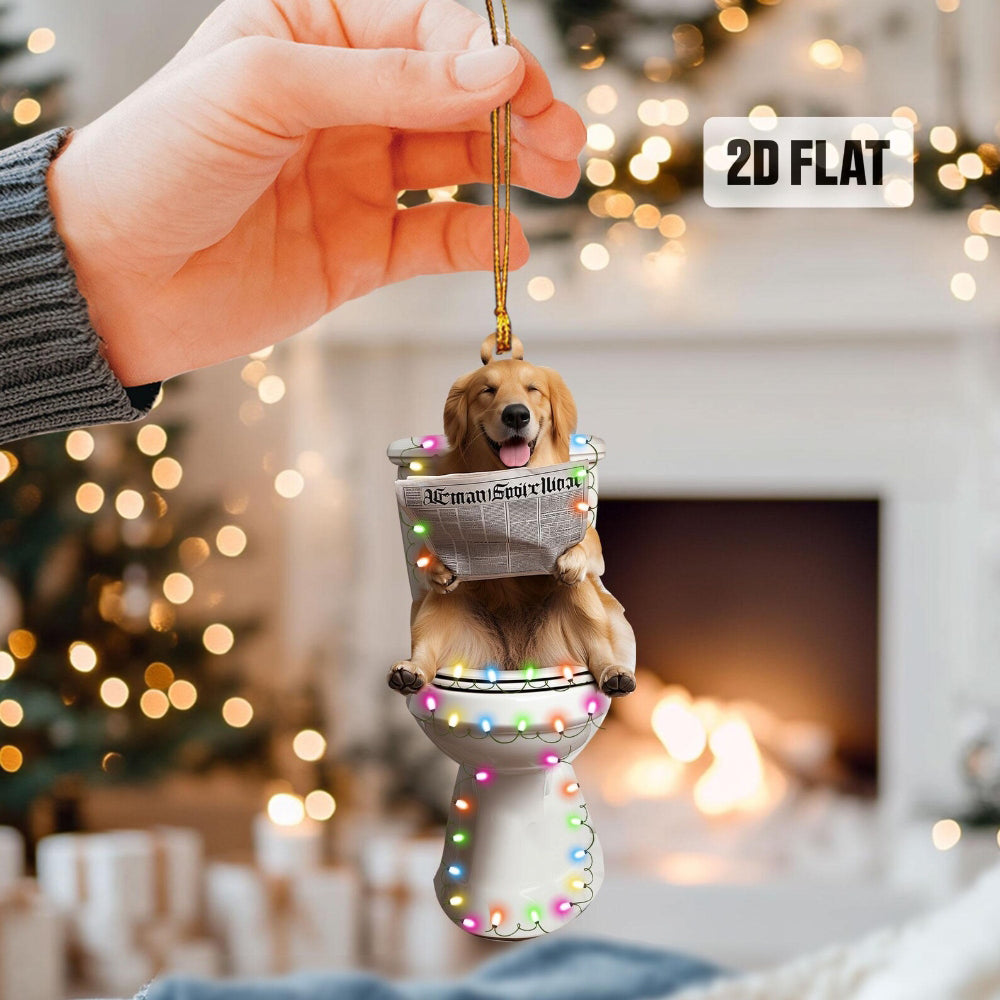 Golden Retriever - Dog Sitting On Toilet Ornament OT024