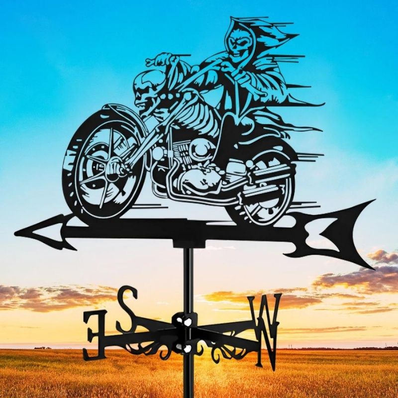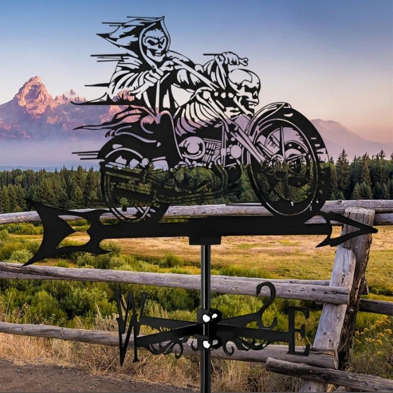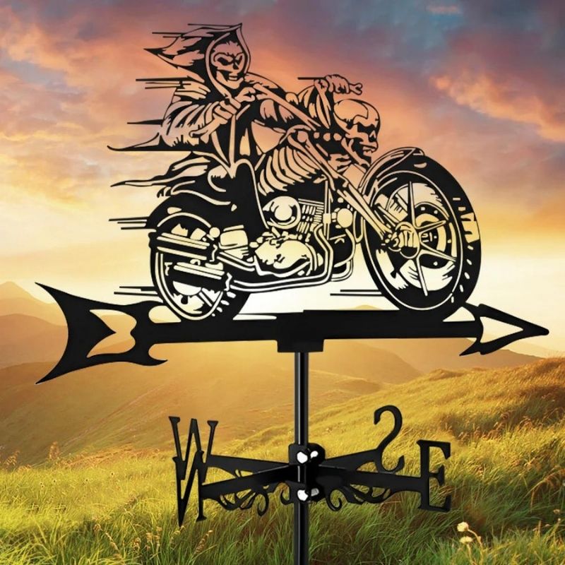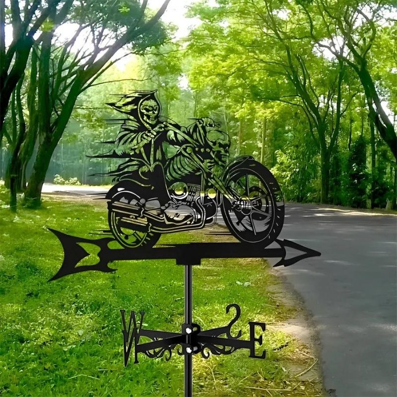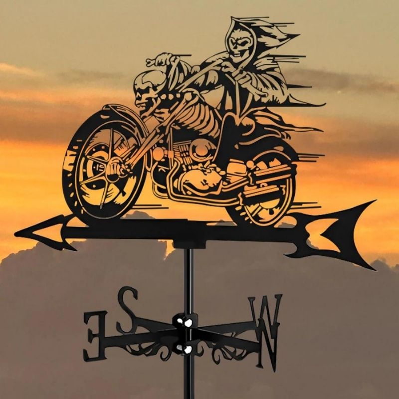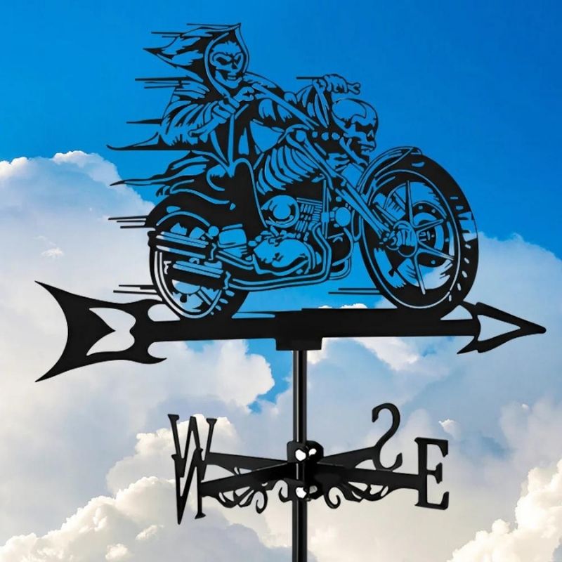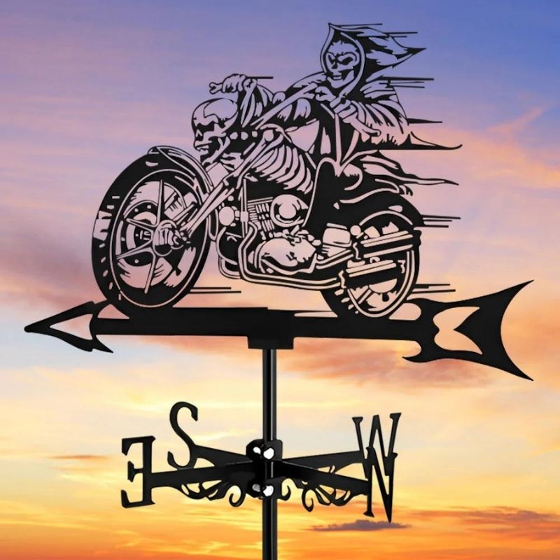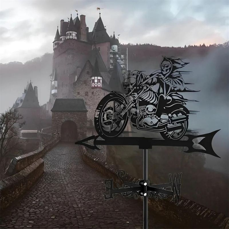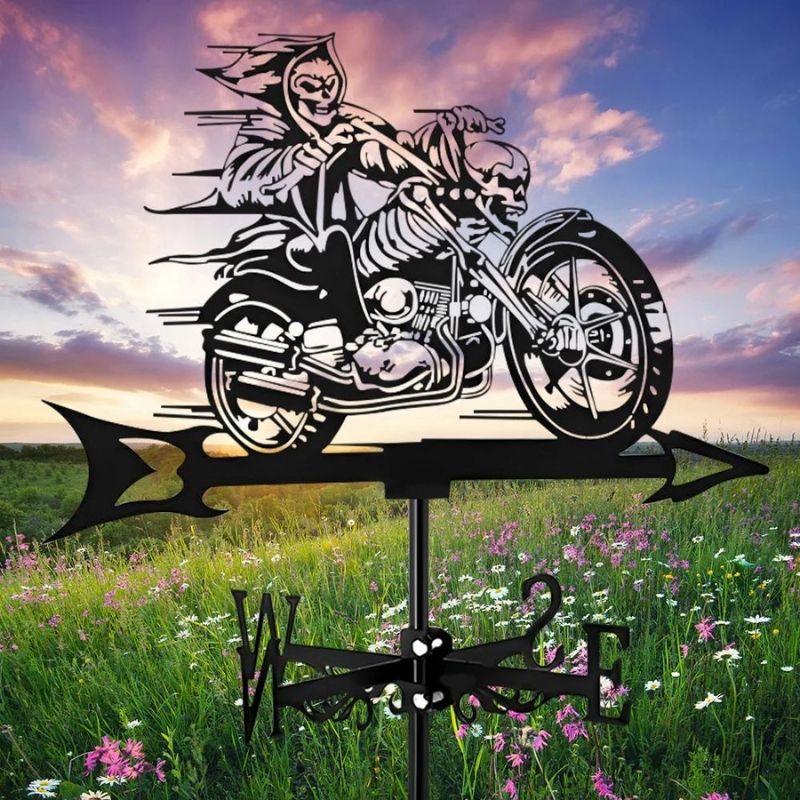 Halloween Skull Motorcycle Stainless Steel Weathervane MW014