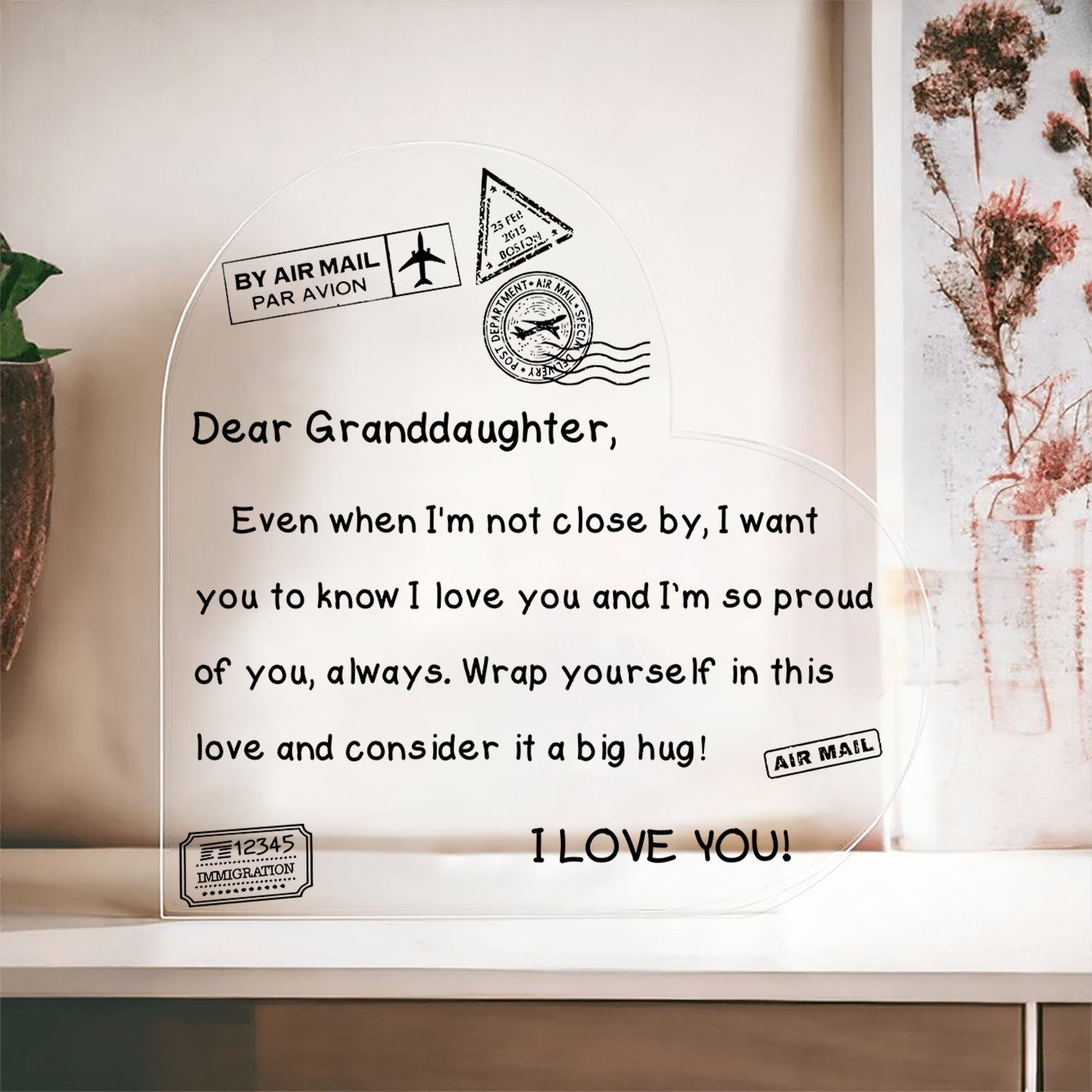 Heartfelt Message: Even when I'm not close by, I want you to know l love and appreciate/I'm so proud of you, always. Wrap yourself in this love and consider it a big hug!