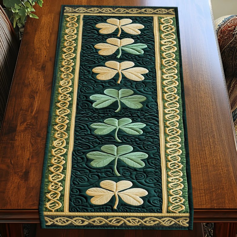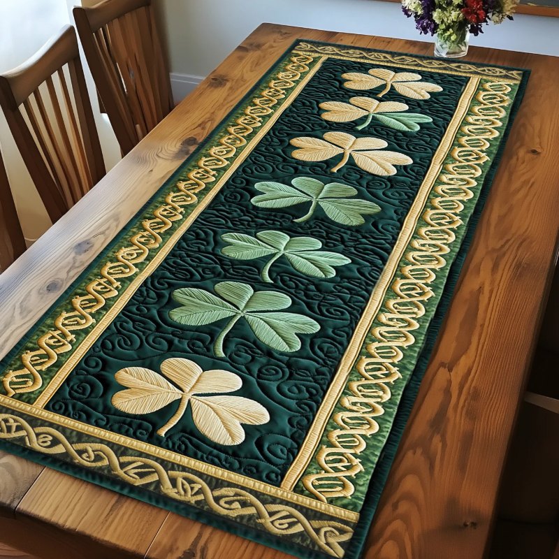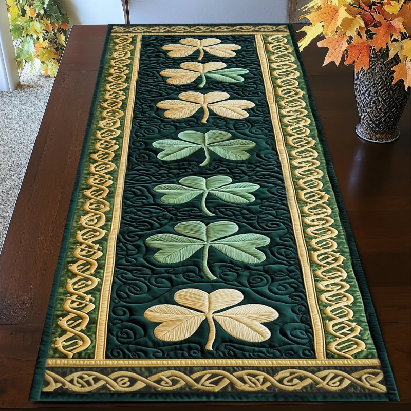 Discover the charm of our Irish Shamrock Table Runner, designed to add a touch of elegance and warmth to your dining space!