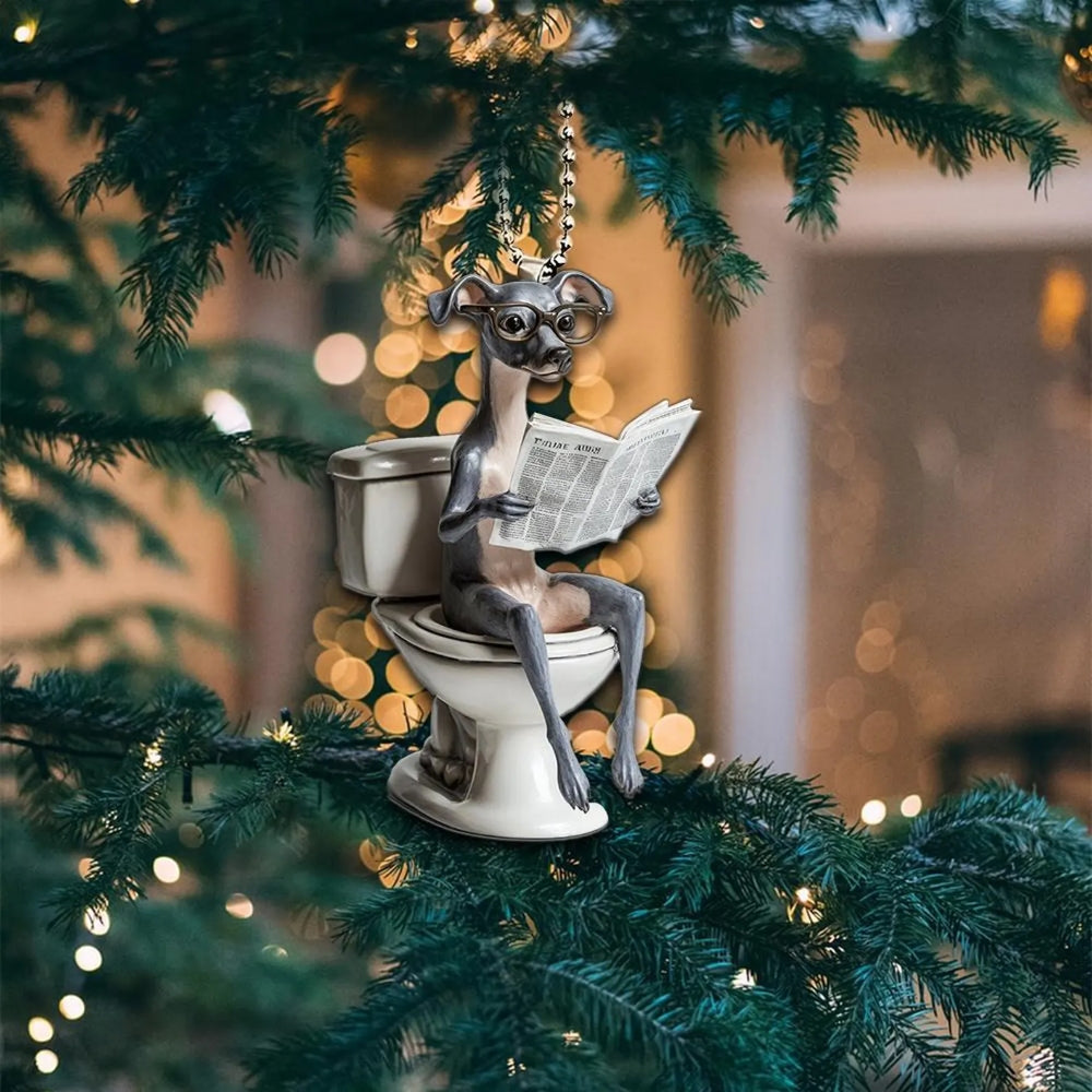 Designed for pet lovers with a sense of humor, this Dog Sitting On Toilet Ornament is perfect for hanging on your Christmas tree, car rearview mirror, desk, or anywhere a laugh is needed. It also makes a great gift for friends, family, or anyone who loves dogs and quirky decor.