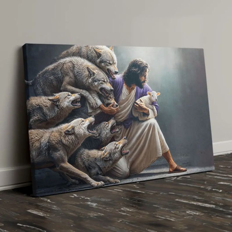 Jesus Protects The Lamb From Wolves - D377 - Gallery Wrapped Canvas Prints