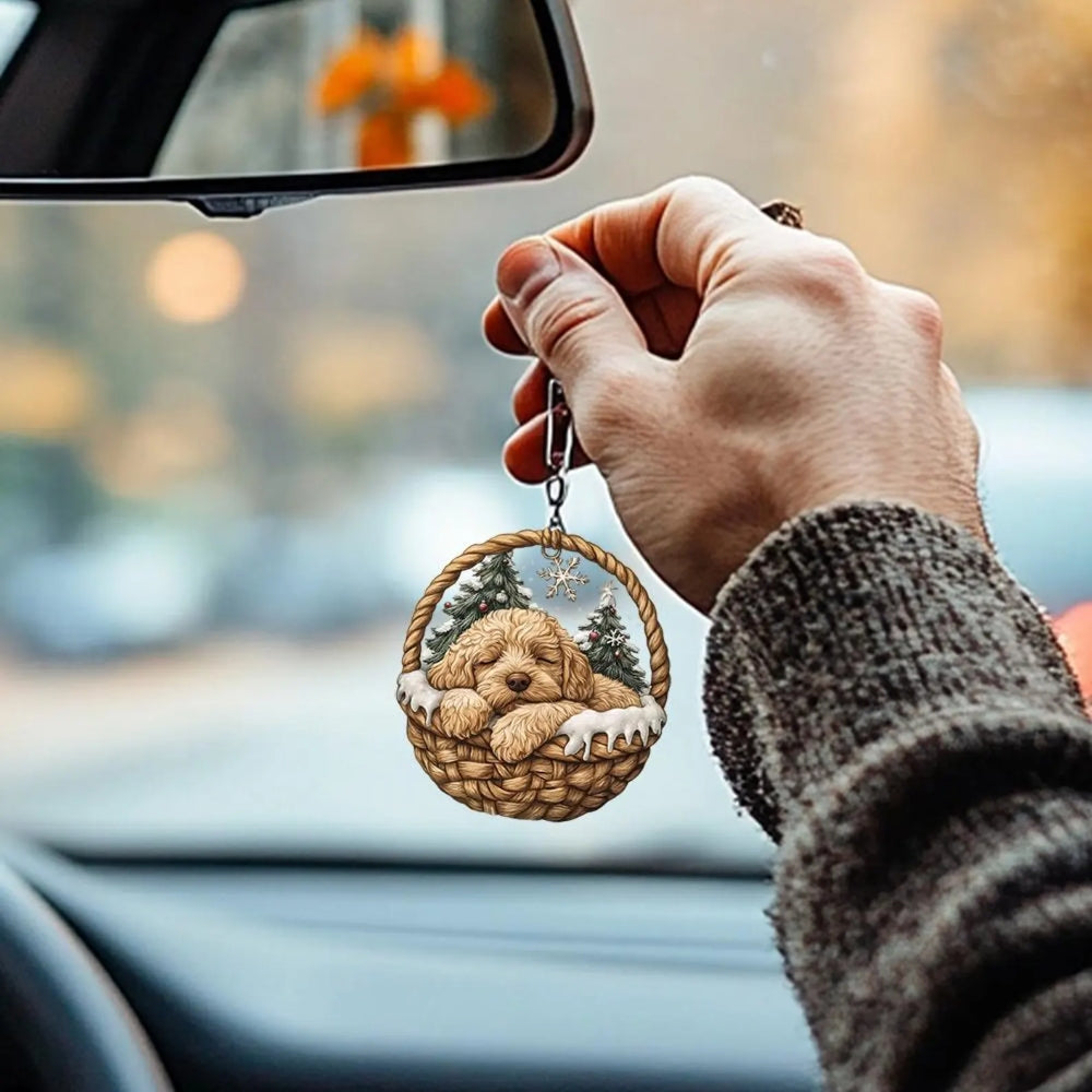 Our Mini Baskets Ornament adds a touch of whimsy and warmth to your home. Perfect for dog lovers, this decor features a charming and playful design depicting a peacefully sleeping pooch. Whether you hang it on your Christmas tree, use it as a keychain, or simply display it on your bookshelf, it'll bring a touch of cheer to any space.