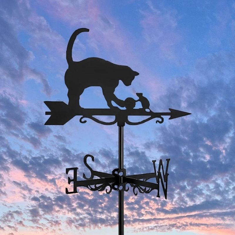 šCreative Design:Ā This Weathervane is made of high-quality Stainless Steel. With stylish straight lines and satin black finishes. This anti-rust iron weather vane is decorated with exquisite patterns.