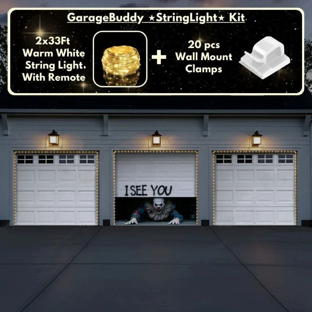 You now have the option to add the string light kit to your order at 50% Off and turn your garage into a true winter wonderland. The kit includes 1x 33ft warm white string light, a remote control, and 10x sticky wall mount clamps.