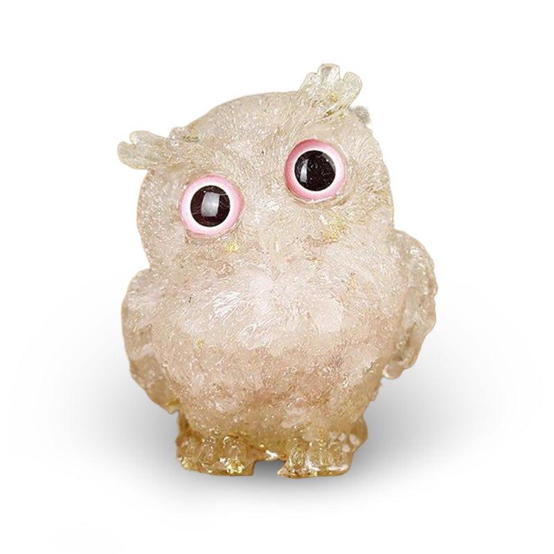 Rose Quartz & Gold Foil - Handmade Natural Crystal Gemstone Owl