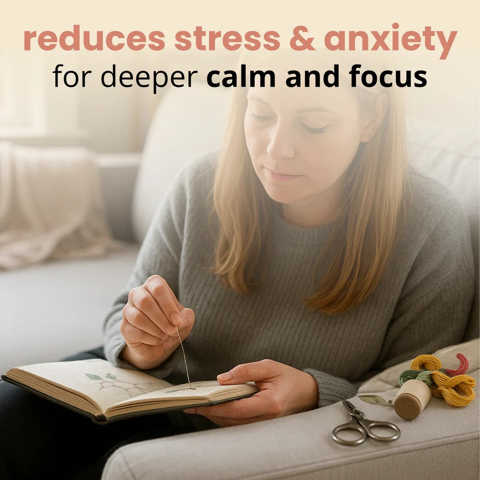 Each page is made from soft, durable cloth that holds your stitches beautifully giving you a gentle canvas to focus on the calming rhythm of needle and thread.