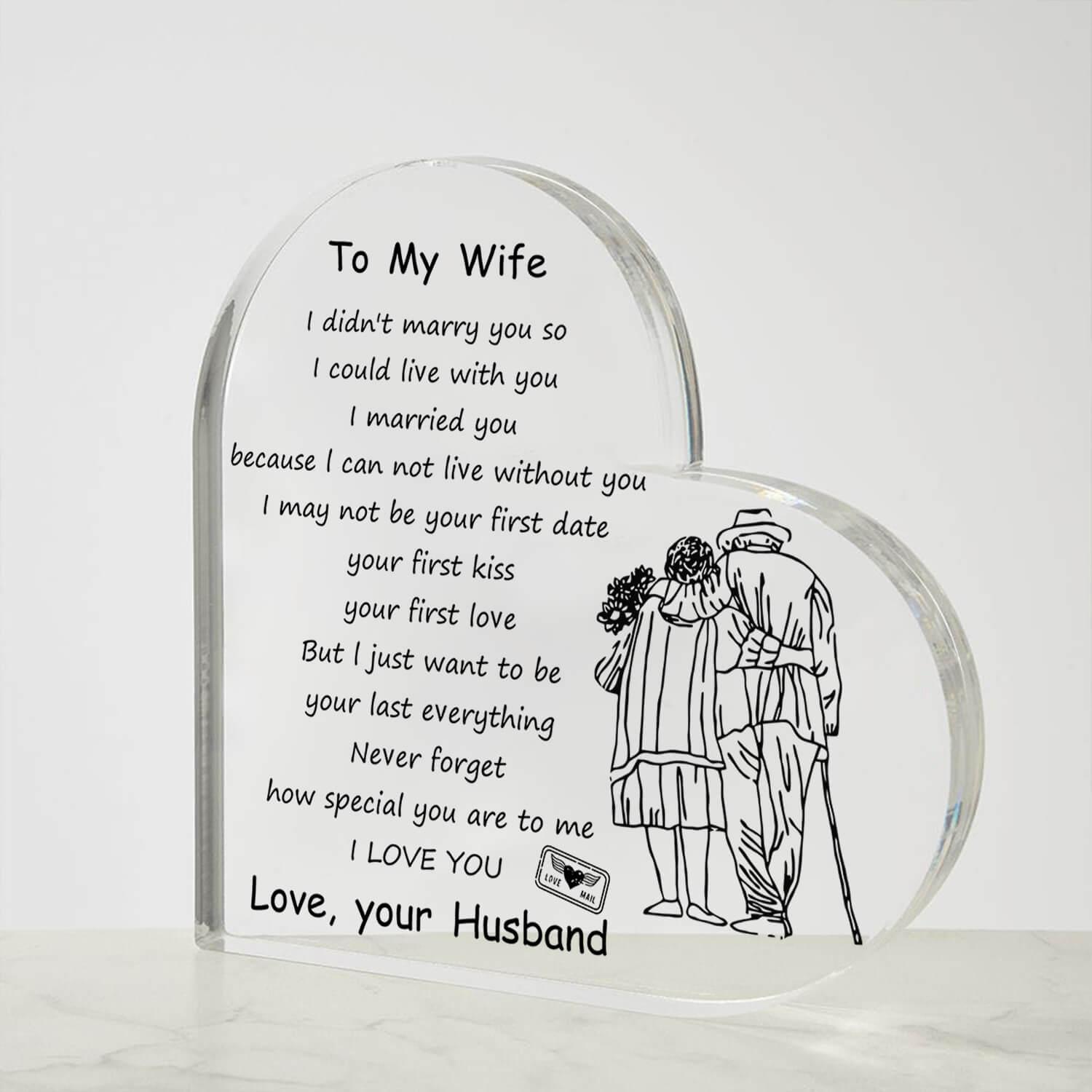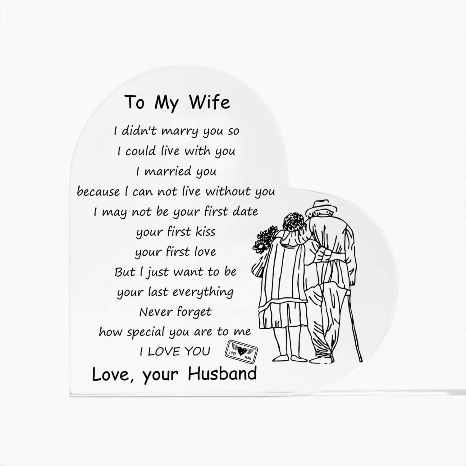 Don't miss the opportunity to let your wife know just how much mean to you. Purchase our Printed Heart Shaped Acrylic Plaque today and let your emotions shine through!