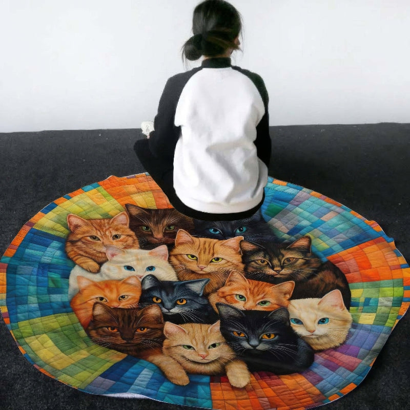 Whirling Cats Round Dream Blanket - H214 - Premium Blanket