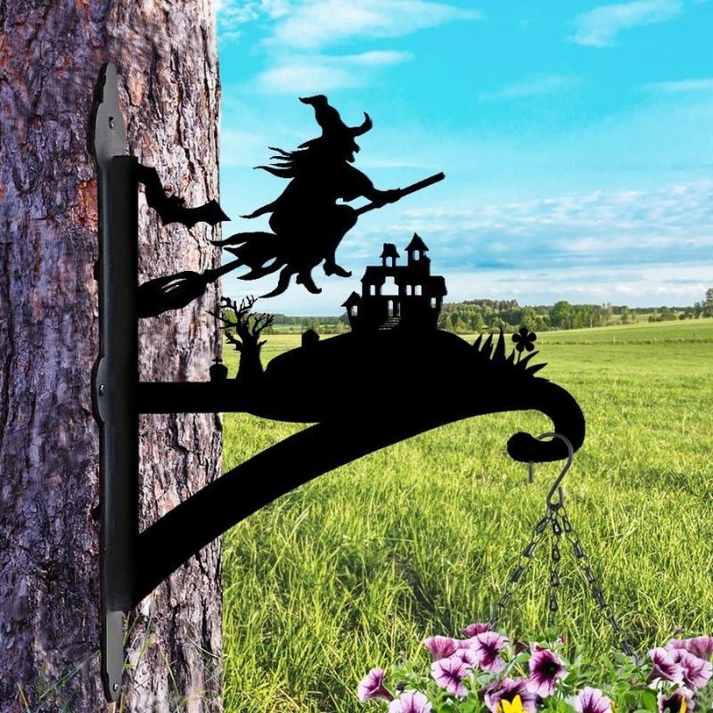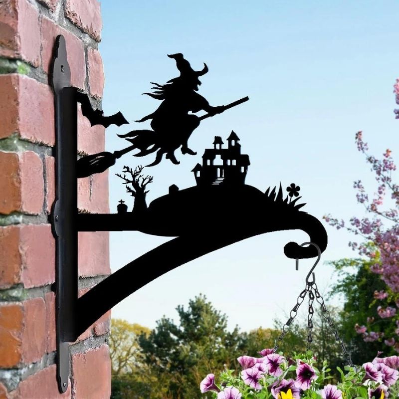 Witch and Haunted Castle Metal Hanging Bracket Plant Stand PS174