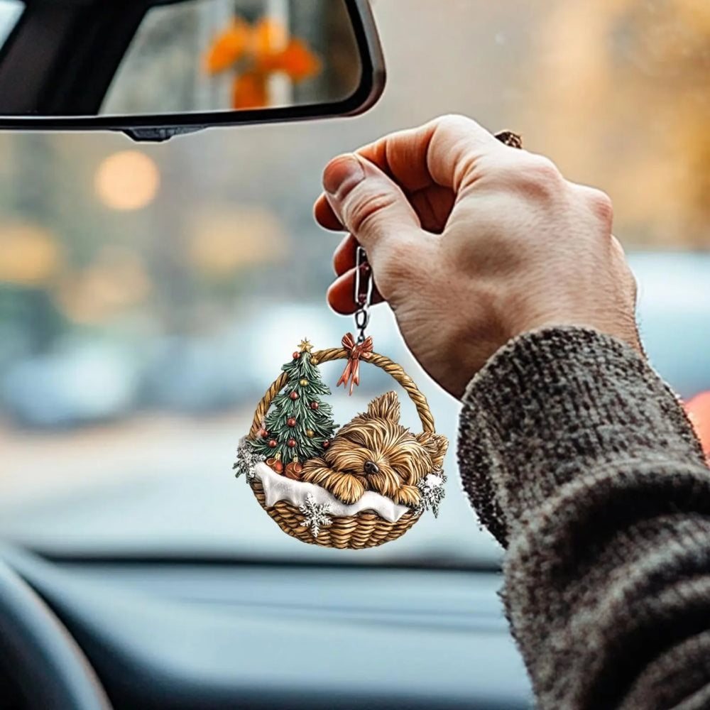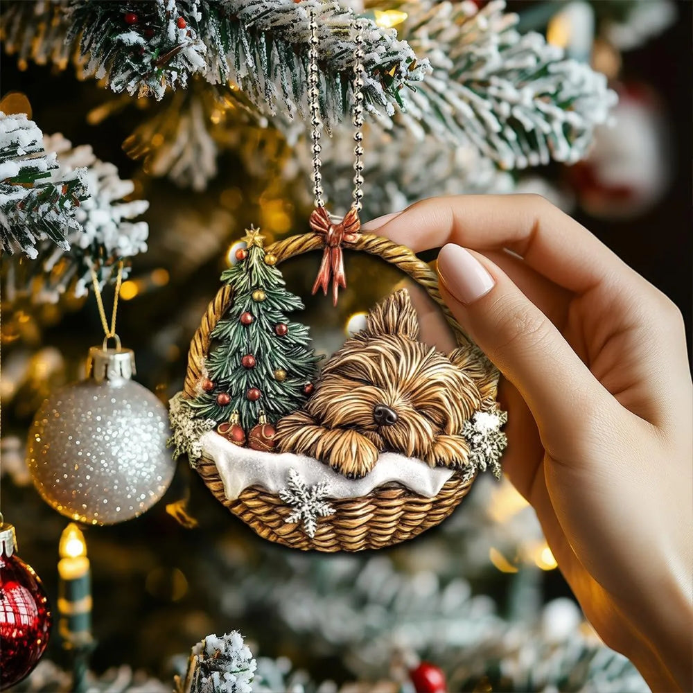 Our Mini Baskets Ornament adds a touch of whimsy and warmth to your home. Perfect for dog lovers, this decor features a charming and playful design depicting a peacefully sleeping pooch. Whether you hang it on your Christmas tree, use it as a keychain, or simply display it on your bookshelf, it'll bring a touch of cheer to any space.